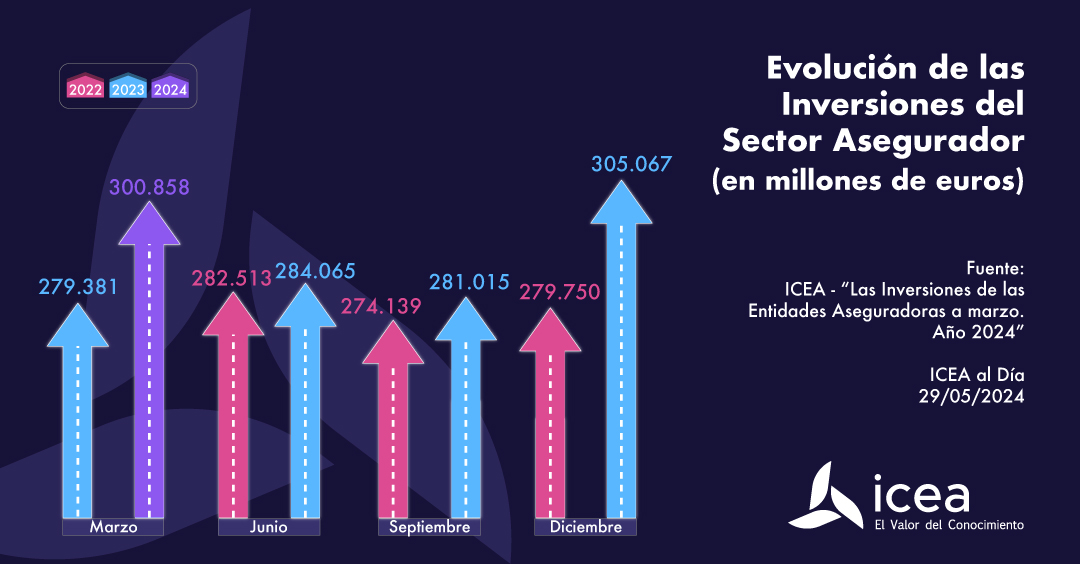Esta información se ha obtenido del informe "Las Inversiones de las Entidades Aseguradoras. Estadística a marzo 2024" publicado por ICEA. Más información a través de icea@icea.es y en los apartados Buscador de estadísticas y estudios y Últimos datos disponibles.